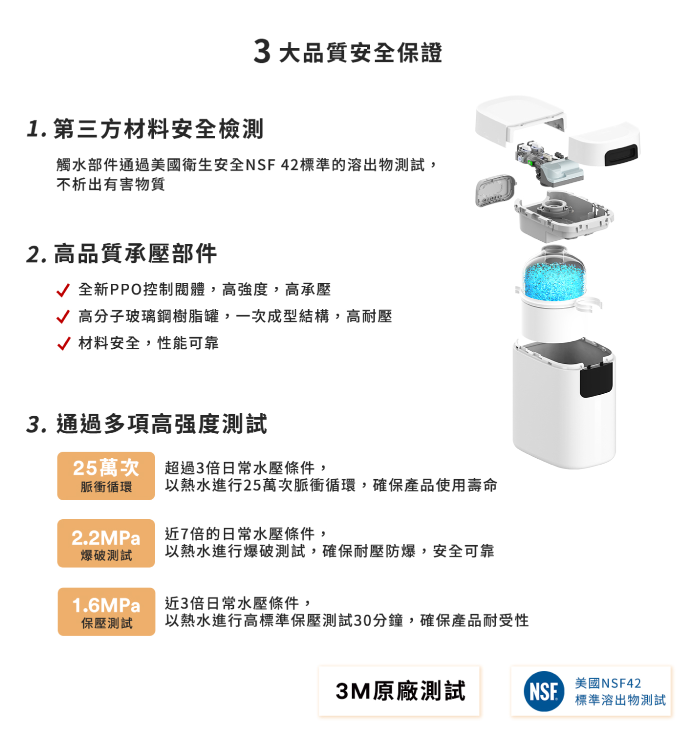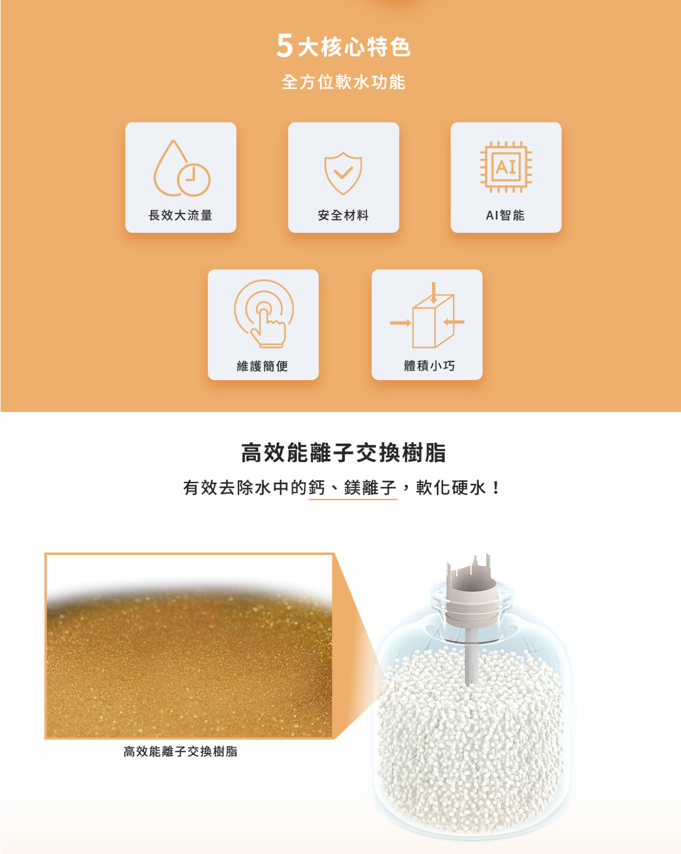 ※商品介紹 ◆軟化水質、降低原水硬度,改善居家用水品質 ◆大通量軟水技術,高效能軟化樹脂,居家用水不受限 ◆智能控制閥,系統智慧運行,達到最佳耗鹽、耗水量 ◆開放式UI系統,操作方便,可簡易設定各種模式 ◆自動計算耗鹽量,低鹽提醒功能。抽屜式鹽蓋,加鹽更便捷 ◆材料、部件、整機通過高標準?度測試,安全可靠