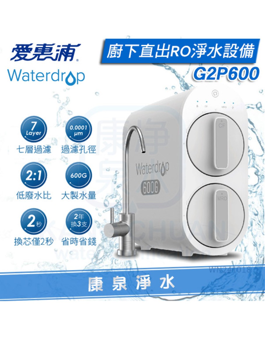 EVERPURE 愛惠浦 Waterdrop G2P600 廚下型無桶直出RO淨水系統